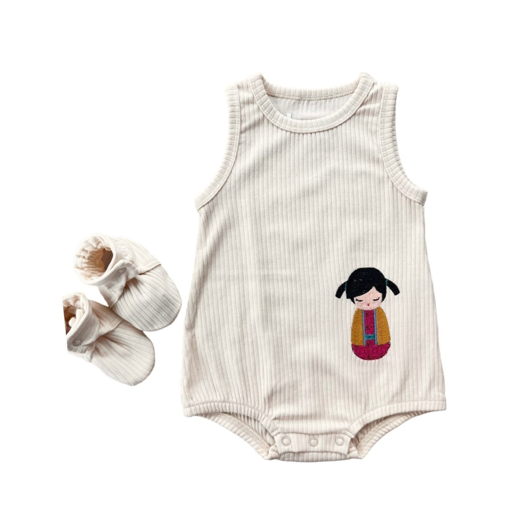 Cream w/pigtails Onesie 2-Piece Set